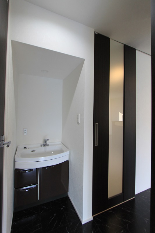 こちらのお宅には、全部で3台の洗面台があります。 お母様専用、若ご家族専用、全員用の洗面台(洗面脱衣室)で、こうして分かれていると とても便利でお互いを気にすることもないですね★ そしてこちらが全員用の洗面台(洗面脱衣室)とお風呂です。