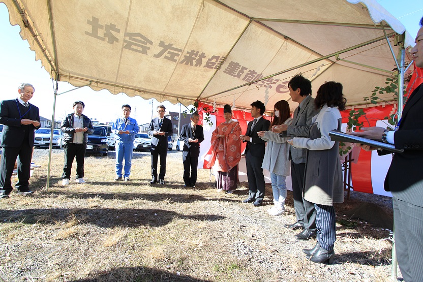 宮司さんをはじめ、お施主様他皆様お揃いになり、地鎮祭が始まりました。