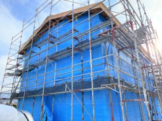 さて、諏訪市にて建設中のS様邸ですが、三連休の間に土台の施工が終わり、足場が組まれました!