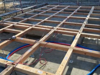 上の写真の、格子状に組まれた木材の部分を土台といいます。
