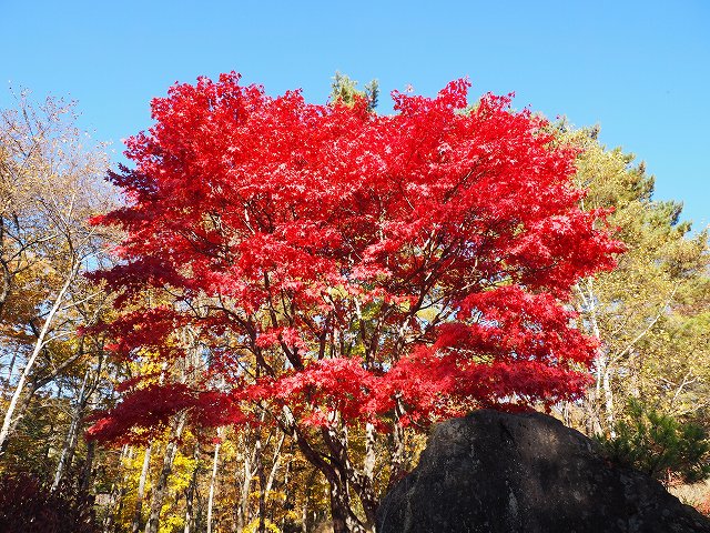 何年か前に会社のS見さんに ”蓼科に真っ赤なモミジがある”