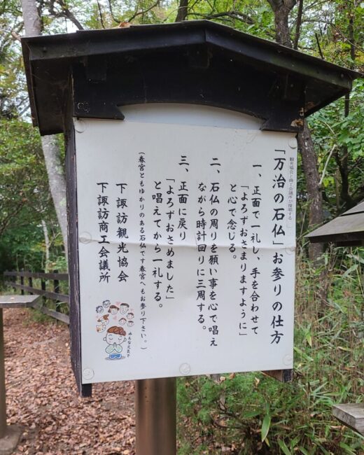 つい先日、下諏訪町の観光名所『万治の石仏(まんじのせきぶつ)』に行ってきました。
