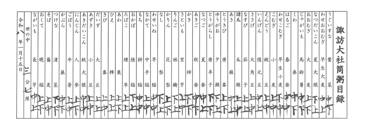 たまたま「諏訪大社筒粥目録」なるものを入手できたので、一緒に見てみましょう👀