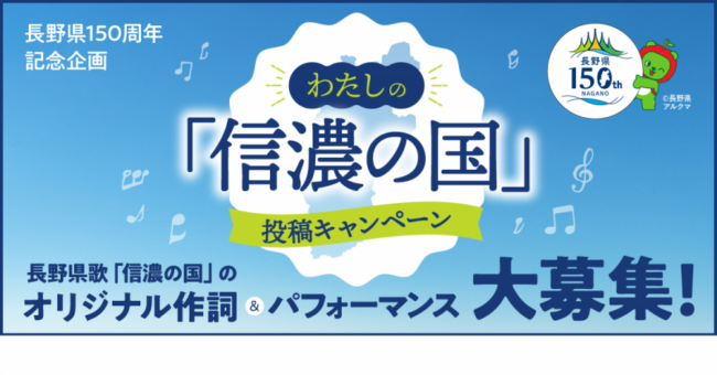 県の記念事業として、県歌「信濃の国」の替え歌を募集しているようです💡